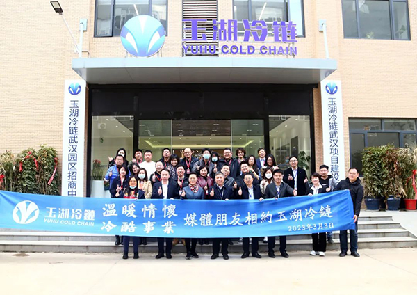 「温暖情怀,冷酷事业,媒体朋友相约玉湖冷链」。