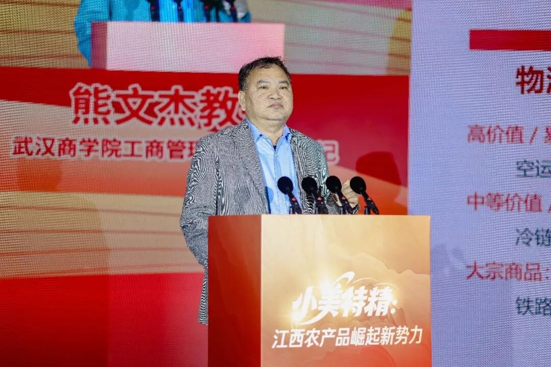 在《小美特精:江西农产品崛起新势力》主题论坛上,武汉商学院工商管理学院党委书记熊文杰教授作《从“藏在深闺”到“走向世界”——地域特色农产品的市场破局之道》专题分享。