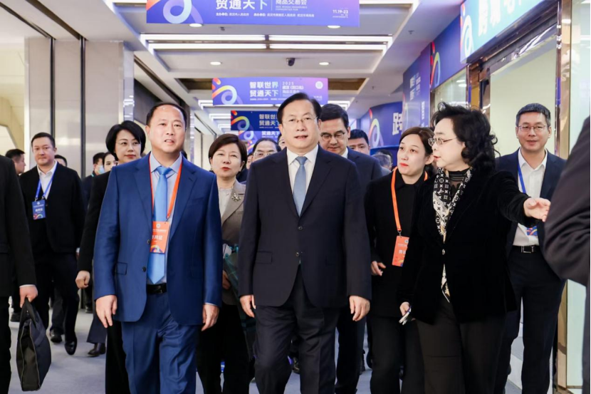 11月20日,以“智联世界 贸通天下”为主题的2025武汉(汉口北)商品交易会(简称“汉交会”)在黄陂正式拉开帷幕。来自全球各地的参展商、采购商与专业观众齐聚武汉,共赴这场国际化经贸盛会。香港玉湖集团董事局主席黄向墨应邀出席开幕式。