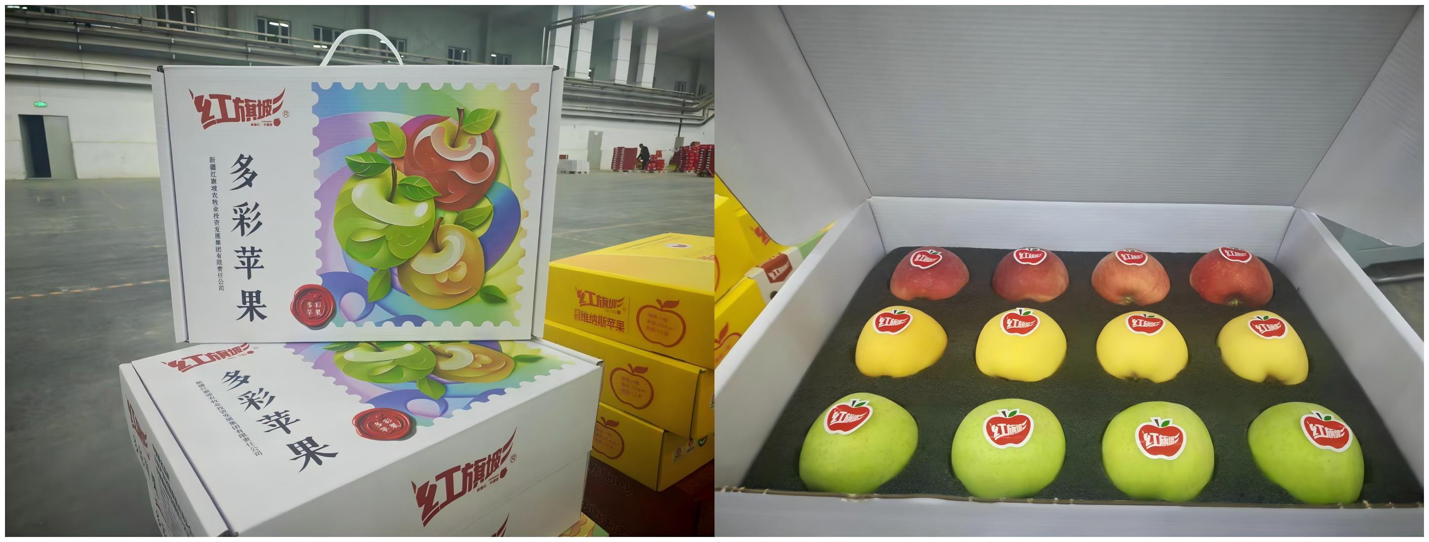 阿克苏“冰糖心”苹果的核心产区,位于新疆的红旗坡农场。这里年平均无霜期达到300天左右,由天山雪水浇灌,沙性土壤透气性强,为苹果生长提供了绝佳的自然环境。此次首柜入仓的阿克苏苹果来自新疆红旗坡农业发展集团有限公司,是当地苹果产业龙头企业。