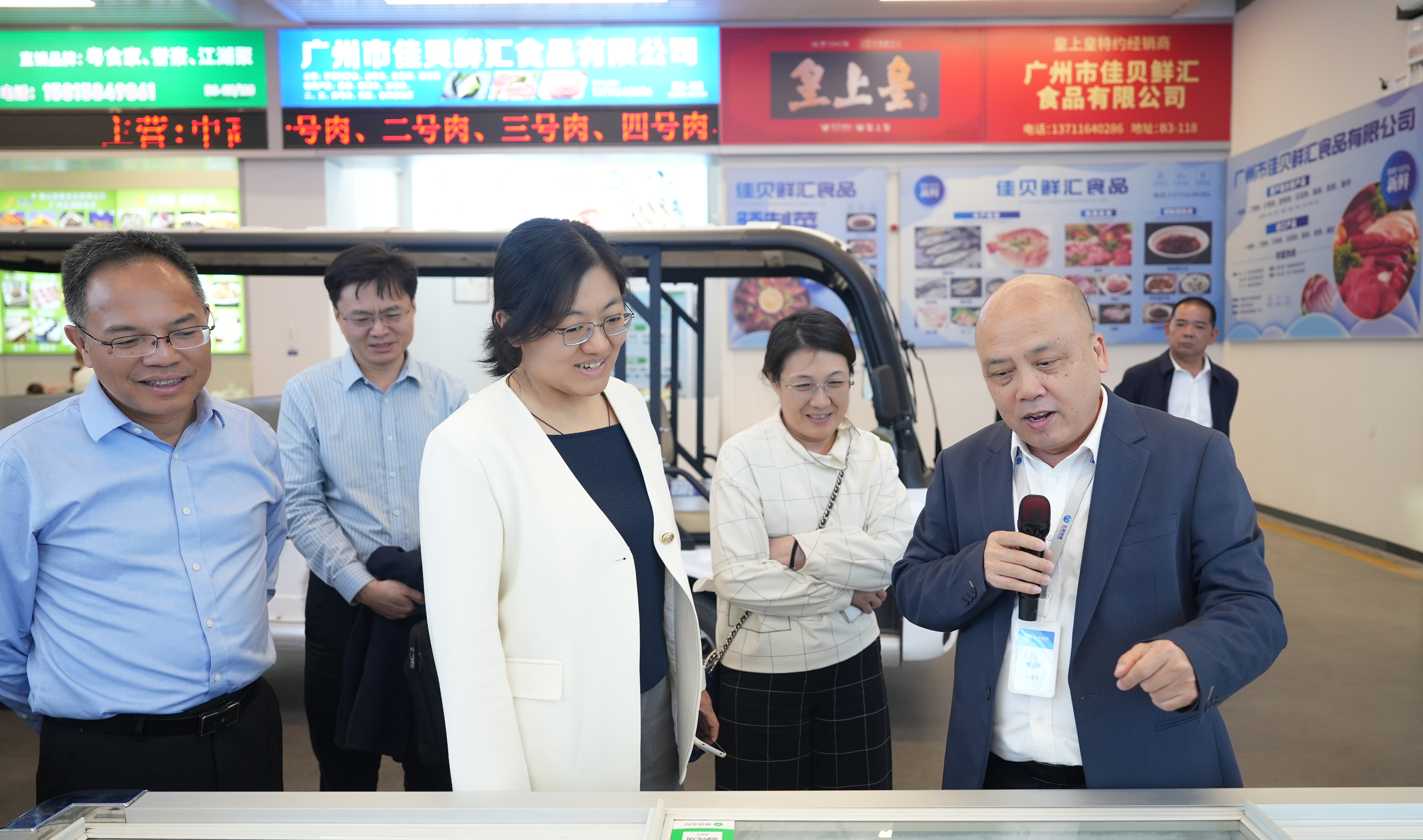 调研组实地走访了广州园区交易大厅、前店后库区、物流区及全自动立体冷库等核心功能区,深入了解玉湖冷链在标准化建设方面的创新举措与实际成效,以及开展服务业标准化工作面临的主要问题和挑战。在随后举行的座谈会上,调研组重点听取了玉湖冷链在国际标准领域取得突破性进展的专题汇报,现场还收集了企业关于“十五五”时期服务业标准需求与设想,以及对国家层面出台服务业标准化宏观政策的建议。