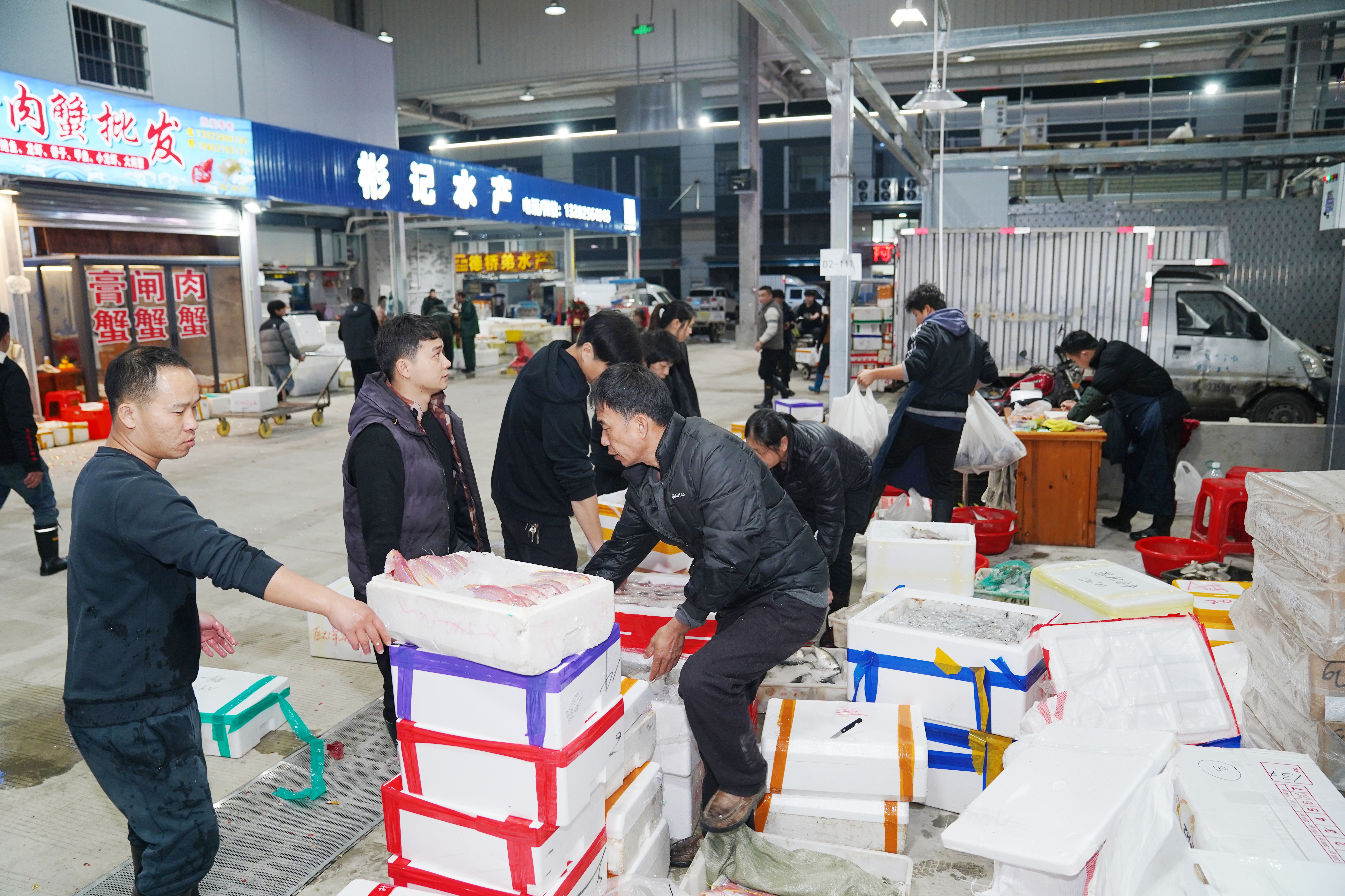 “我们从白天就启动搬迁进场,凌晨新鲜的渔获就全部上架了,确保进市场采购的第一批采购商能选购到最新鲜的水产品。”一位正在整理摊位的深海鱼类商户介绍道。