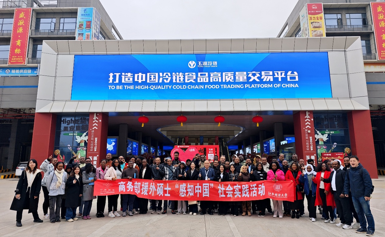 随后,双方围绕玉湖冷链的全球化业务实践展开建设性交流。江西财经大学外国语学院院长万谊娜在致辞中指出,此次走进玉湖冷链是一次生动的“产学研”融合实践,希望学员们能将所见所学的“中国经验”带回本国,成为推动全球产业协同、促进友好合作的桥梁。