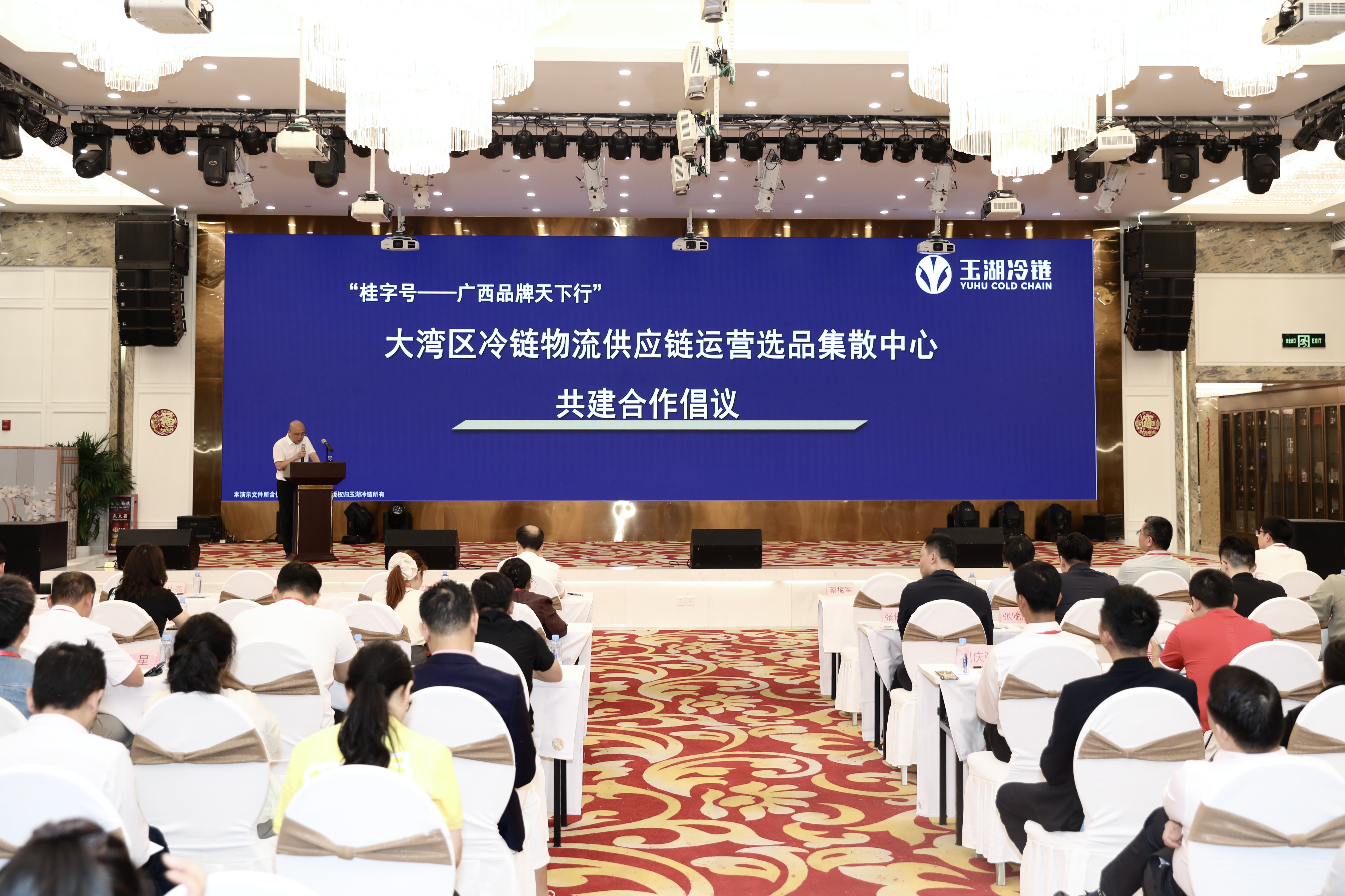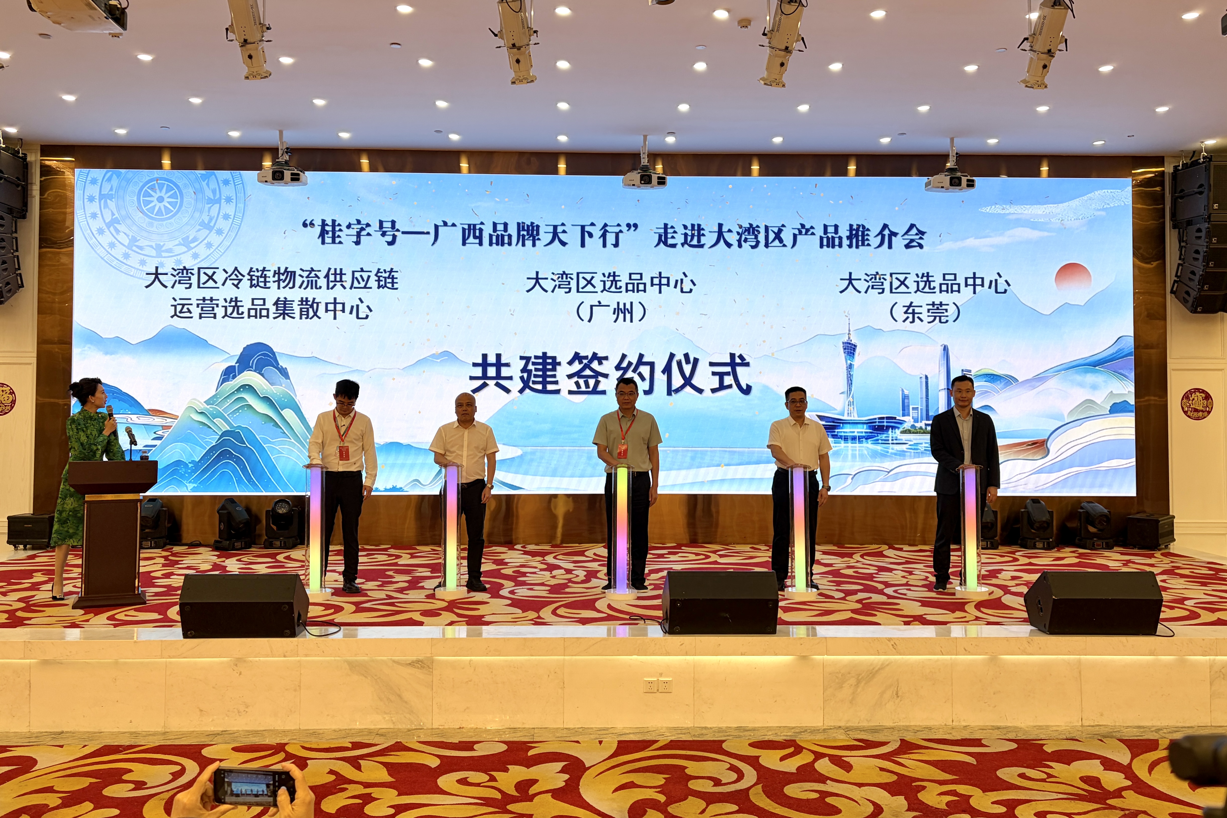玉湖冷链(广州)交易中心副董事长张春华受邀出席并作主旨演讲,现场与广西壮族自治区产品质量检验研究院党委书记、院长蒙泳,广西壮族自治区对接粤港澳大湾区建设综合服务中心主任黎锦共同签署《“桂字号——广西品牌天下行”大湾区冷链物流供应链运营选品集散中心共建合作协议》。三方将展开为期五年的深度协作,携手打造“桂字号”冷链中心,为广西优质农产品“入湾出海”铺设高效通道。