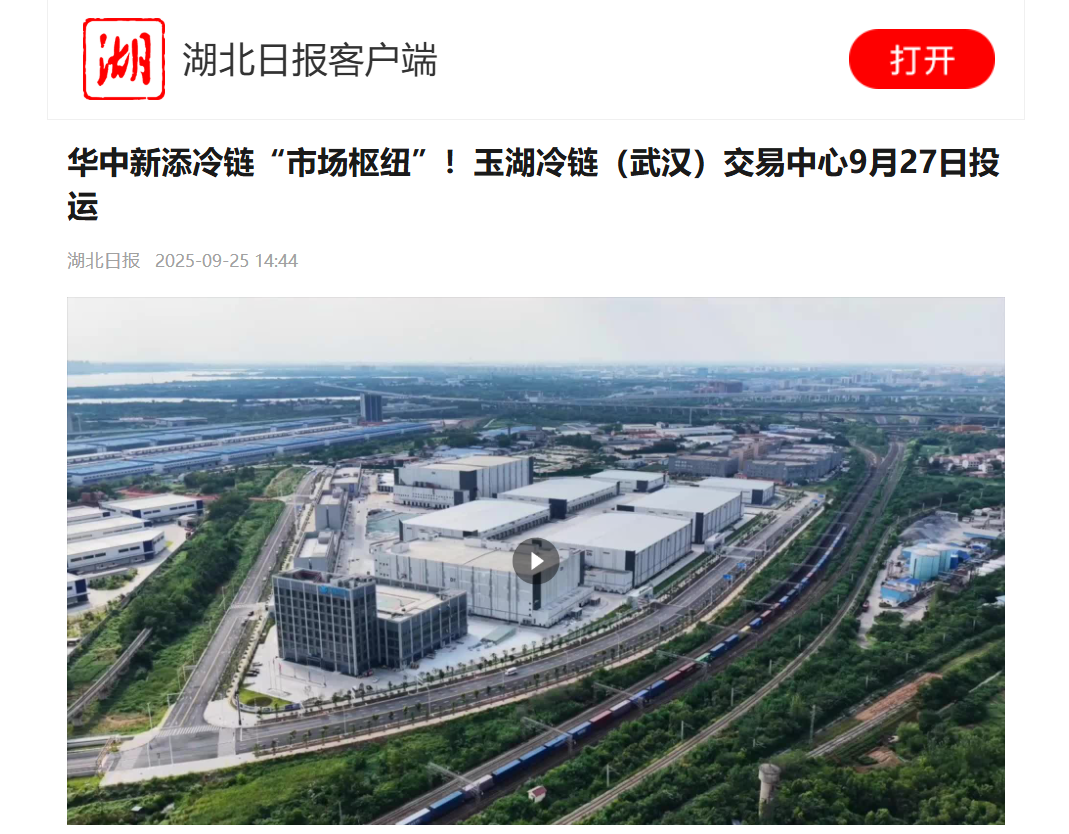 近日,湖北日报记者发布了题为《华中新添冷链“市场枢纽”!玉湖冷链(武汉)交易中心9月27日投运》的文章,专题报道...