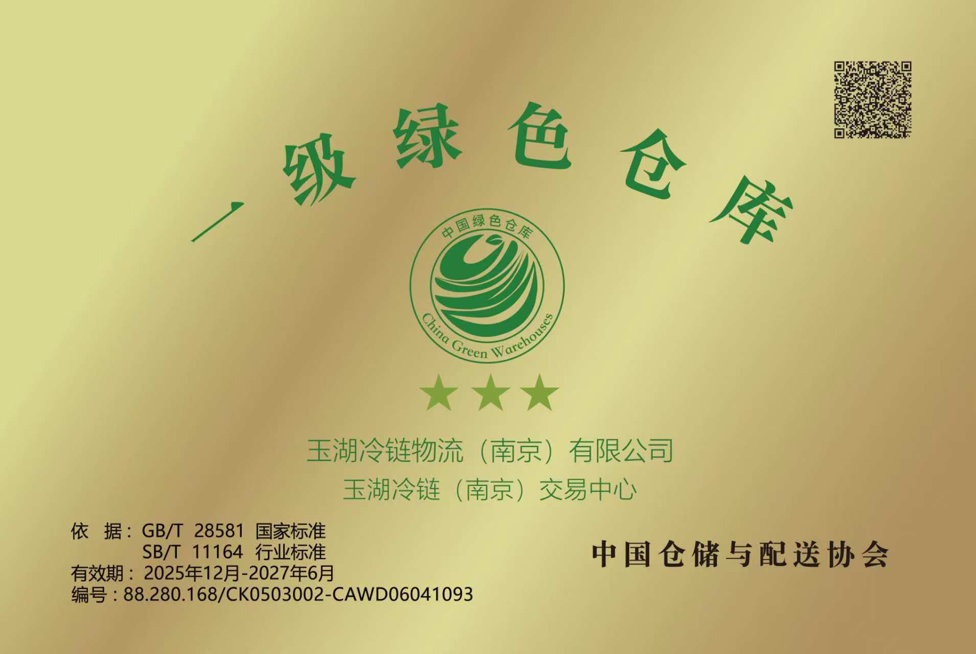 12-302025全部获得“绿仓”认证!玉湖冷链的“双碳”实践跑出加速度“十四五”收官在即,玉湖冷链绿色发展再迎喜讯:随着南京园区最新获评“一级(三星)绿色仓库”认证,目前玉湖冷链全...