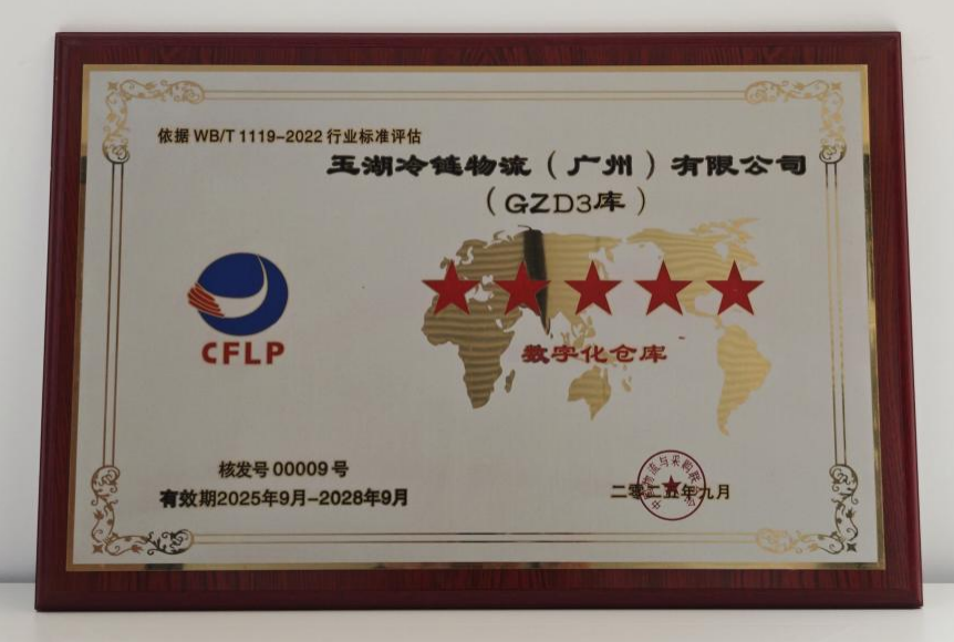 10月24日,由中国物流与采购联合会(以下简称“中物联”)主办,中物联物流企业评估办公室、中物联数字化仓储分会联合承办的“数字驱动,打造智慧供应链新引擎”论坛在深圳召开。凭借在数字化冷库建设与金融创新实践领域的突出表现,玉湖冷链广州园区成功获评“第二十批五星级冷链物流企业”及“第一批企业五星级数字化仓库”。值得关注的是,玉湖冷链广州园区冷库亦是华南地区首家获此认证的五星级数字化仓库。