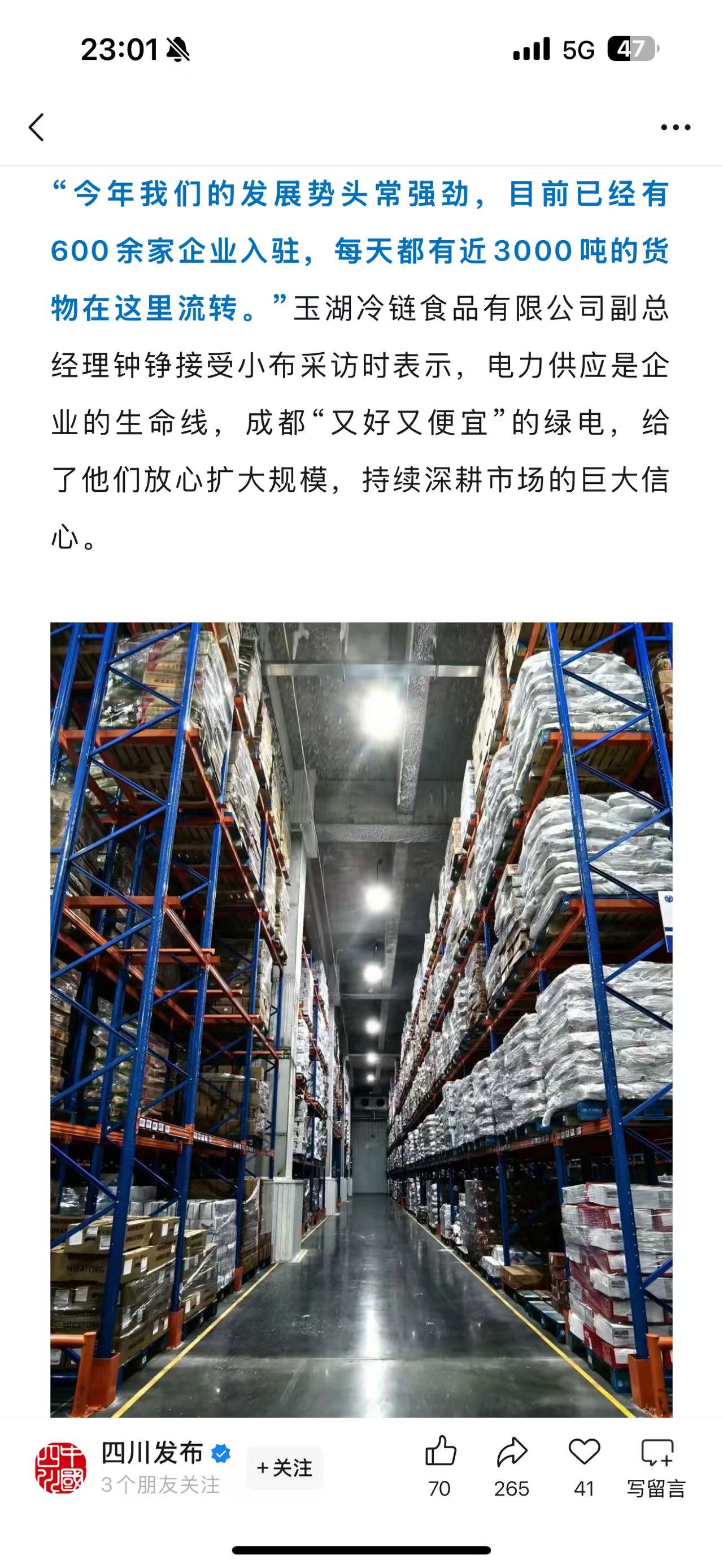 四川电视台新闻联播以视频形式呈现出玉湖冷链成都园区一派繁忙有序的运营景象,生动体现了其在物流保供与冷链流通领域的重要作用。媒体记者通过实地探访,反映出园区在稳定运营与能源管理方面的扎实成效,也从不同视角展现了玉湖冷链成都园区的发展活力与行业贡献。