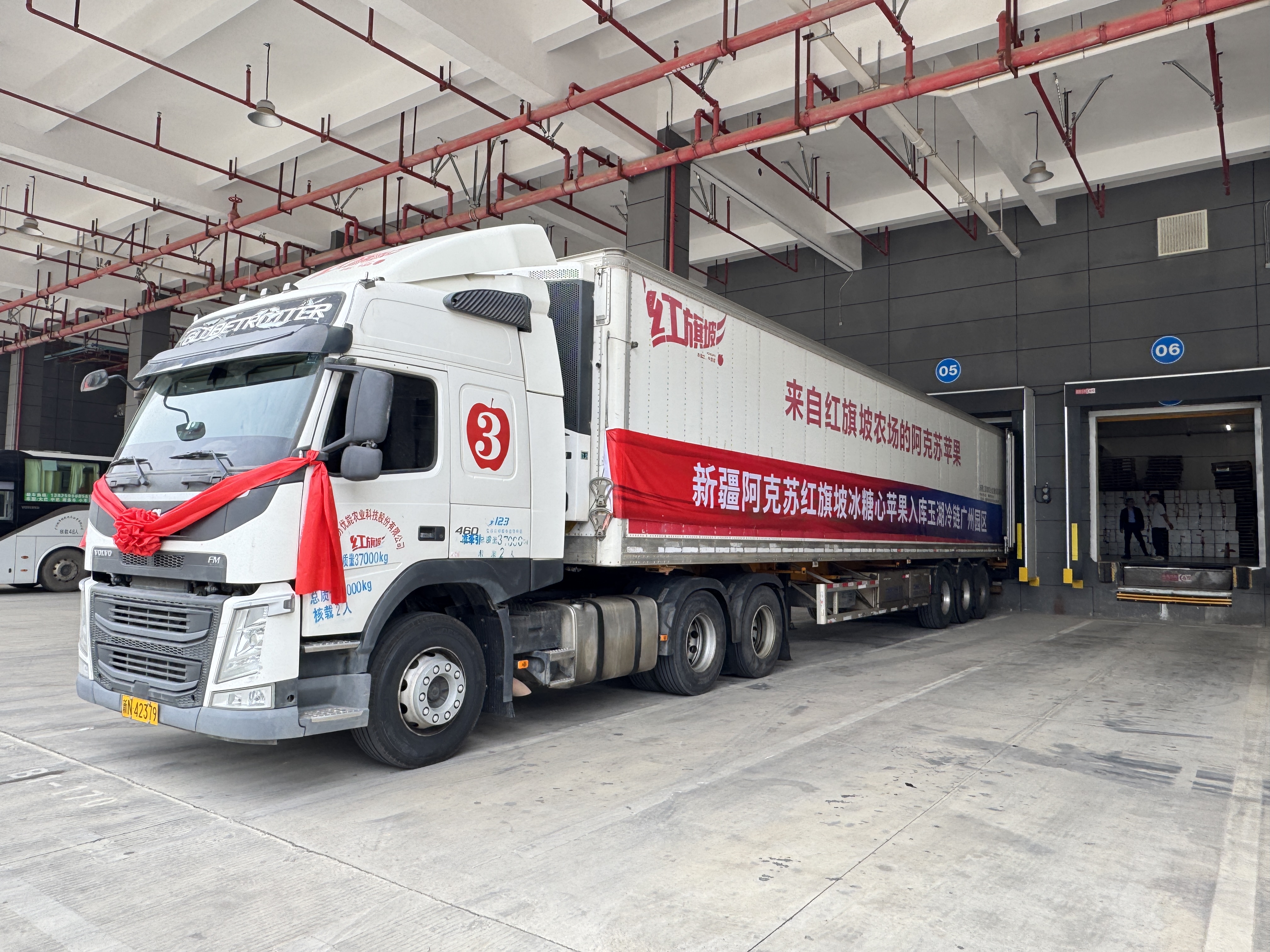 12月12日,历经4800公里全程冷链运输,来自新疆阿克苏红旗坡农场的优质冰糖心苹果,顺利抵达玉湖冷链(广州)交易中心并完成入库。这批被誉为“苹果中的爱马仕”的冬日珍果,冷链护航鲜如初摘,今日(12月13日)起正式开柜销售,为大湾区消费者献上一份源自天山脚下的自然馈赠。