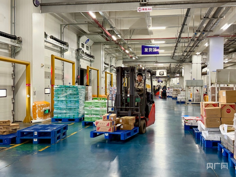 “现在是中班作业时间,早班车辆已全部发运完毕,中午12点要发走的订单正在争分夺秒。”在玉湖冷链自动化立体库月台,现场物流工作人员吴维维一边巡视,一边向记者介绍。放眼望去,库门内侧,高耸的货架与传送带直抵库区深处,货物进出由系统自动完成,基本实现全程自动化存取;库门外侧,货品经全温控穿堂快速流转,通过管理系统自动完成分拣、信息录入、缠膜,再由传输轨道精准送出,直接转车发运。