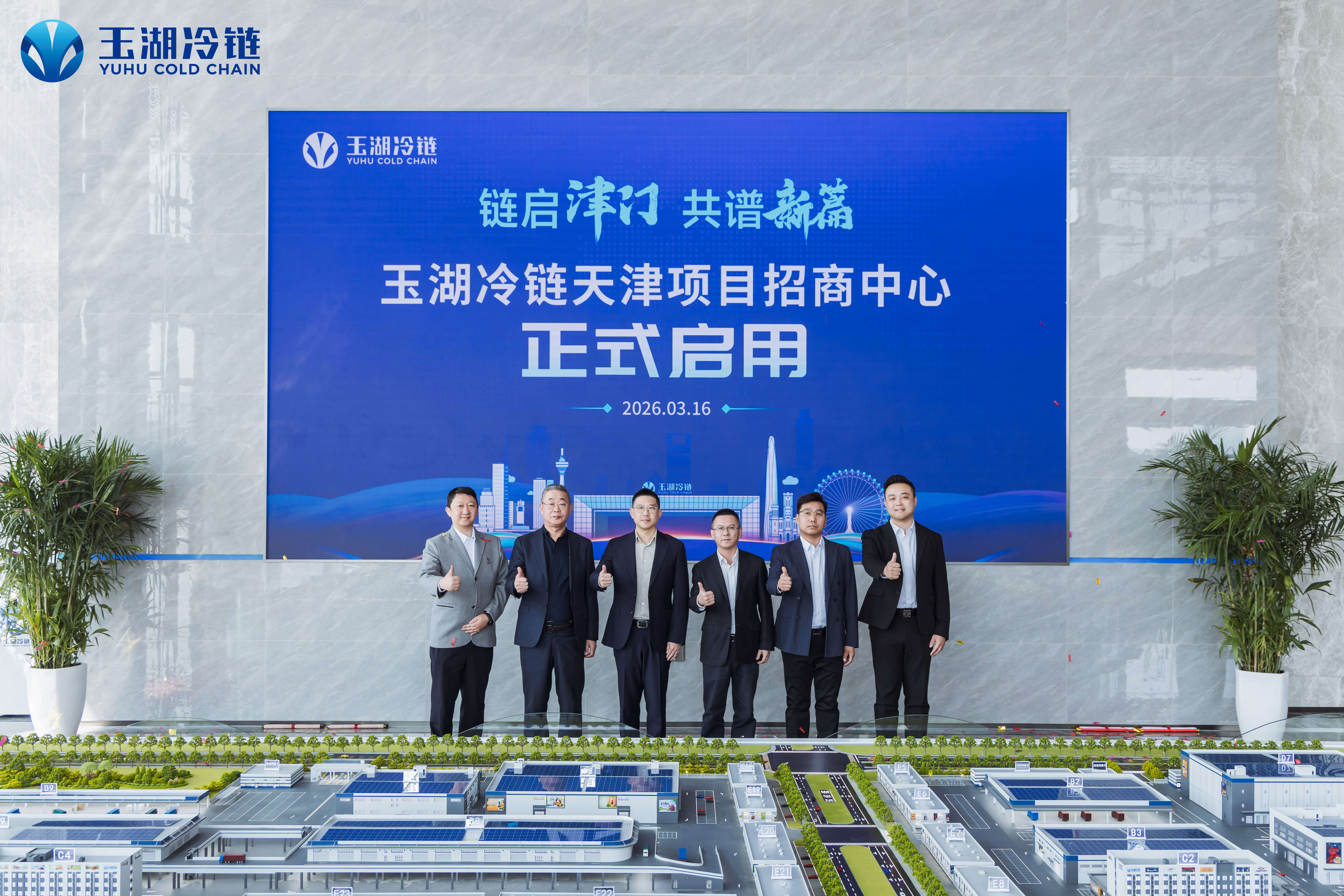 王骏在致辞中表示,天津作为“一带一路”北向通道重要节点城市、京津冀协同发展核心枢纽,坐拥天津港北方冷链进口门户优势,商流、物流、资金流、信息流高度集聚,是玉湖冷链深耕北方市场的战略要地。此次招商中心启用,既是玉湖冷链布局北方冷链市场的关键举措,也是企业践行社会责任、助力区域产业升级的具体实践。未来,项目将依托国际高标智慧冷链园区及线上线下一体化交易模式,整合全球优质食材资源与国内头部渠道资源,构建集交易展示、冷链仓储、加工配送、供应链金融、品牌孵化于一体的全链条冷链服务体系,吸引产业链上下游企业集聚发展,助力天津建设北方冷链食品供应链核心枢纽,推动区域冷链产业提质增效、迭代升级。锚定这一目标,项目将加快推进核心区域建设,力争早日实现社会效益与经济效益,为区域产业发展注入新动能。